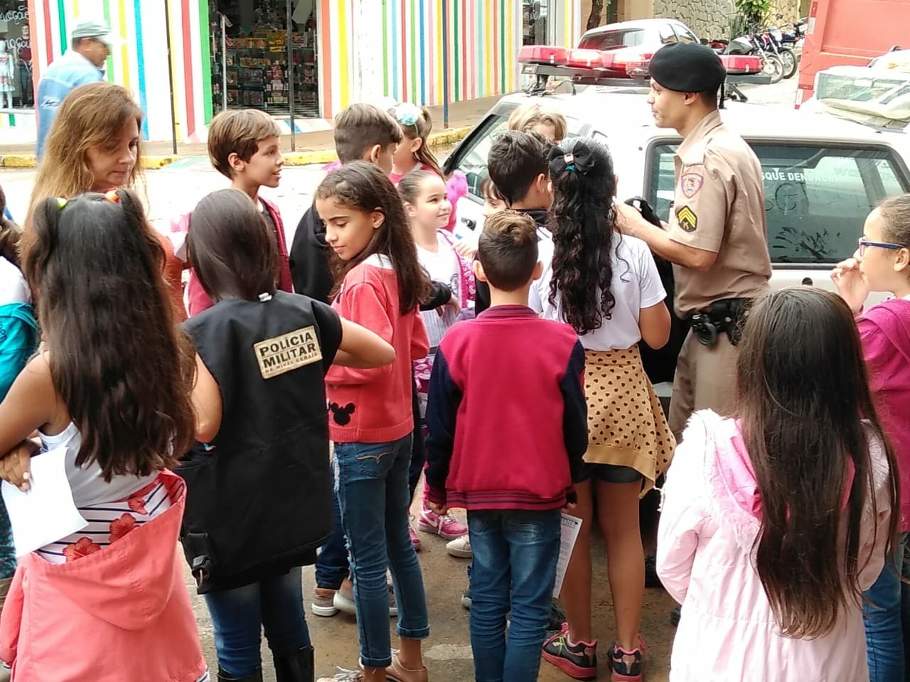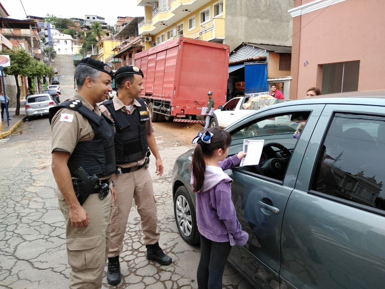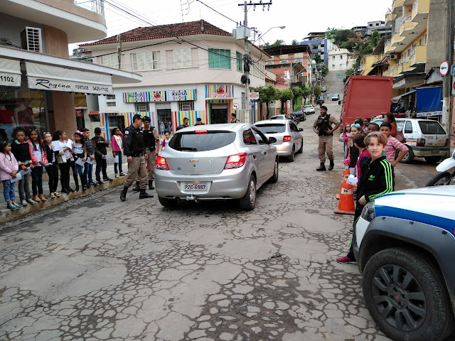 Assimiladas às orientações, as crianças foram pra rua e realizaram junto com a PM uma blitz educativa, distribuindo Dicas da PM, orientando condutores e usuários da via pública acerca da importância da prevenção ao uso de drogas e abuso no trânsito.