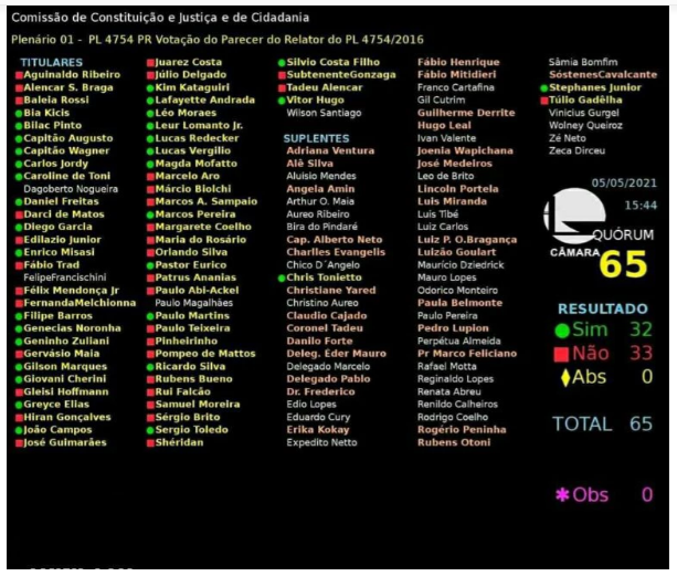 Veja os nomes dos deputados que votaram contra o projeto na CCJ.